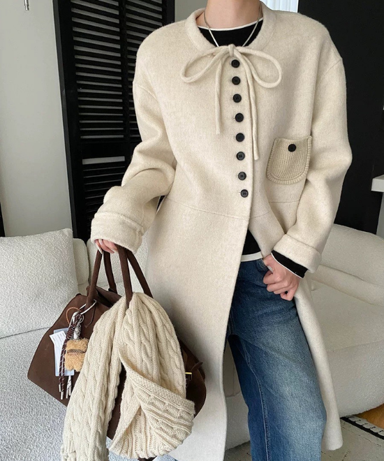 ミディ丈の柔らかなシルエットが魅力のウールコート