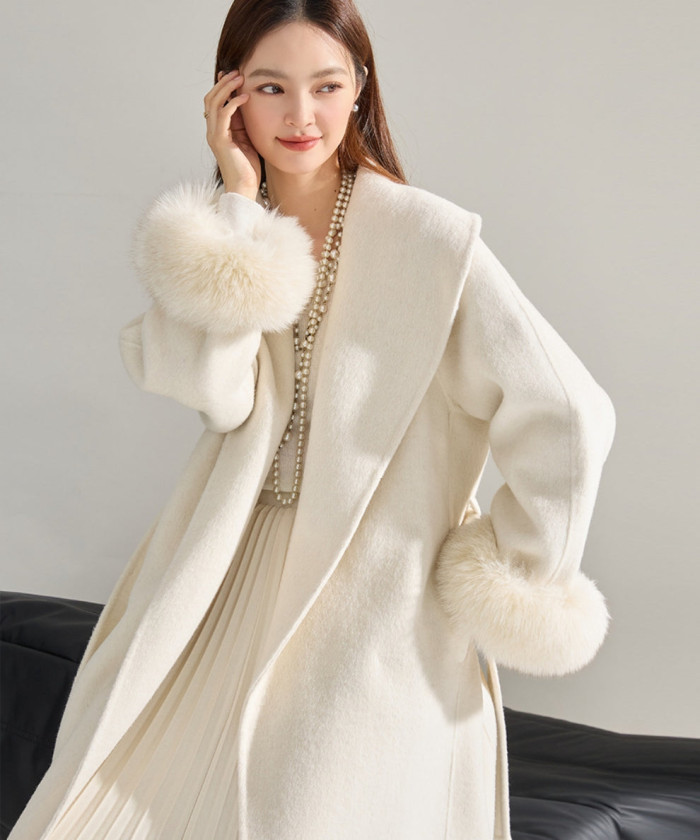 しなやかな落ち感でフェミニンに仕上がるショールカラーコート
