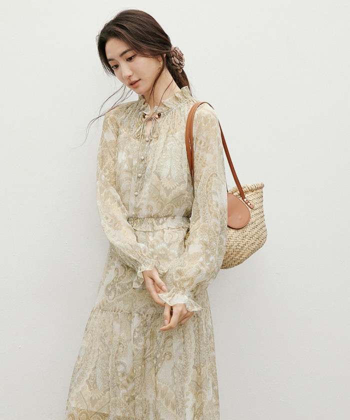 ふんわりと揺れるシアー感が魅力のペイズリーワンピース