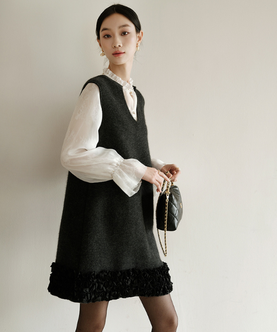 ふんわりフリルが可憐に揺れるウールベストドレス