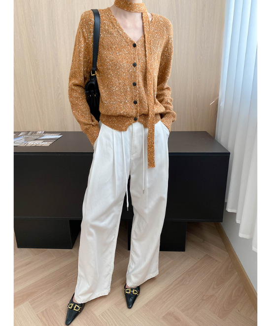 素材によっては派手に見えるオレンジも、ふんわり優しいニットなら悪目立ちせずナチュラルに。そんなオレンジの魅力を引き立てたいなら、ボトムスはやっぱりホワイトがおすすめ。ミックス毛糸使用のホワイトも混じったニットだから、品よくまとまっています。