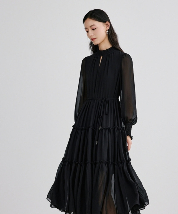 揺れ感が上品に映えるティアードワンピース