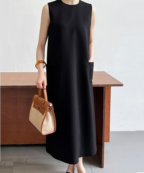 ネックラインもアームホールも型紙の原型のような超シンプルデザインのワンピース。