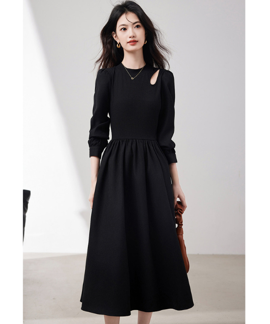 黒ワンピースも、デザイン次第でこんなに垢抜け。肩元のカットアウトが、控えめながらも女性らしさを引き出してくれます。シンプルながら上品、アクセやバッグで表情も変えやすい優秀ワンピース。