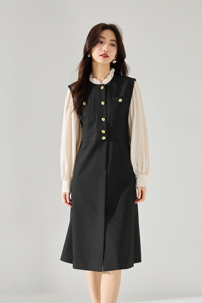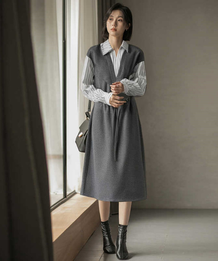 そんな時に頼りになるのが、着るだけでスタイルが整う“ツーピース風ワンピース”です。