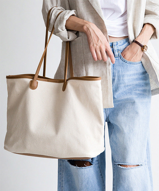 たっぷり荷物が入るキャンバストートは、軽やかな素材感で持ちやすいのが魅力。カジュアルになりすぎないシルエットで、大人のデイリーコーデにも自然に馴染みます。ラフさと実用性を両立したい日に選びたいバッグです。