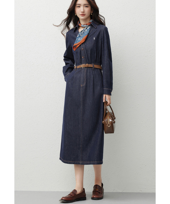 ワンピースと言えど、デニム素材だとカジュアルに見えるものも多い中、こちらは女性らしいデザインが魅力的な1枚。小顔効果のある深めのVネックに、ウエストを細く見せるたっぷりギャザー、縦長ラインを強調するタイトなシルエットなど、体型カバーも期待できます。