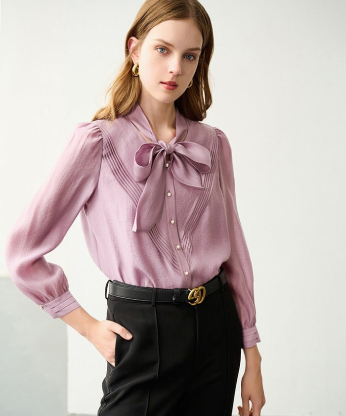洗練シルエットのボウタイブラウス