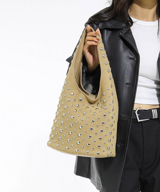 ソフトで上品な大人向けスタッズハンドバッグ