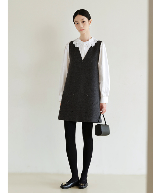 ベストとスカートでフォークロア調に、ジャンパースカートと合わせて清楚に、ノーカラージャケットのスーツと合わせて襟をポイントにしても素敵です。