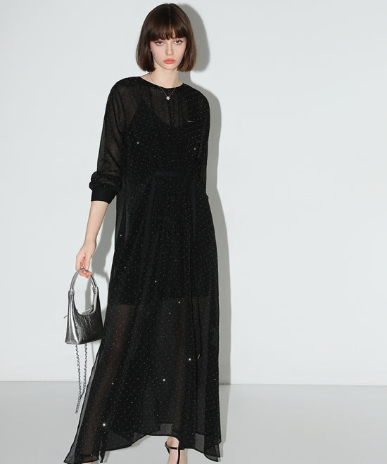 春夏に活躍したシースルーワンピースは、秋冬にも使えます。