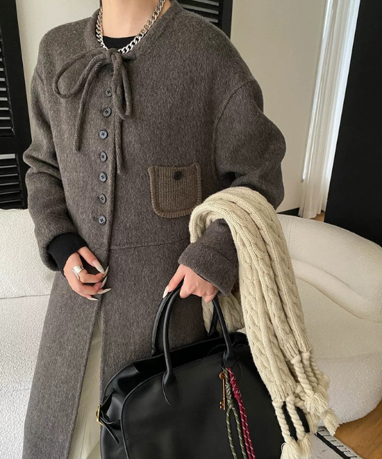 首元のデザインでやわらかな表情を添えるウールコート