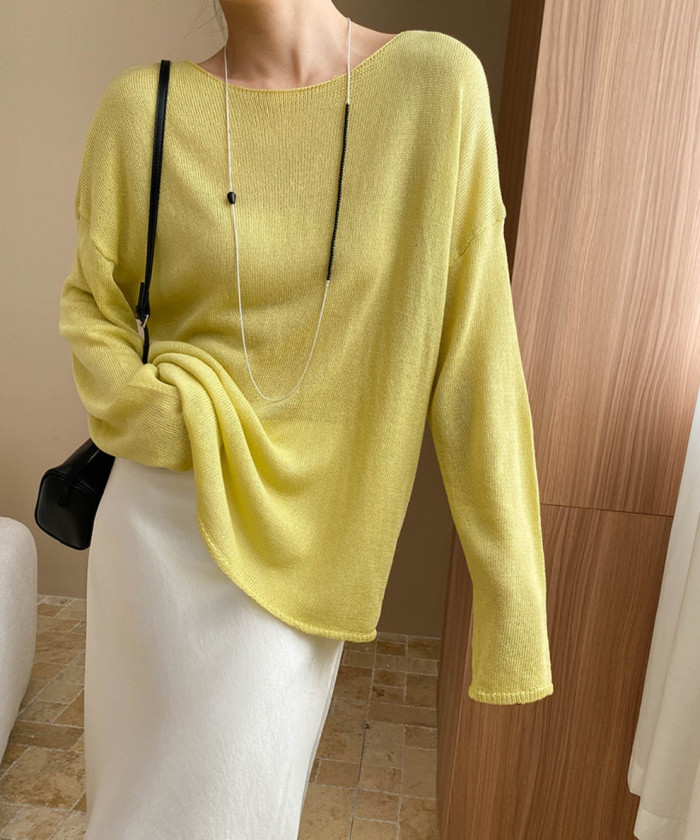 リネン混ならではのさらりとした風合いが心地よく、軽やかな着心地が魅力のニットプルオーバー。ルーズすぎないシルエットが体のラインをやさしく包み込み、きれい色でも気負わず着られます。パンツにもスカートにも合わせやすく、日常のお出かけを自然に華やがせてくれる一枚です。