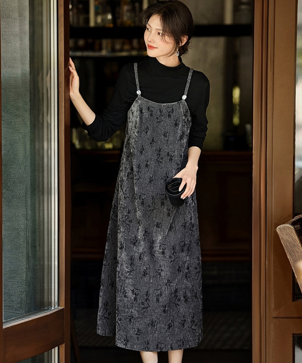 ゆるっと感がかわいいキャミソールワンピース。アレンジの効くアイテムなので、インナーや羽織の工夫でリラクシーにもお出かけ用としても着られて便利。またストラップの長さによっても魅せ方を変えられます。造りはシンプルながらもリーフ柄がさりげなくおしゃれ。