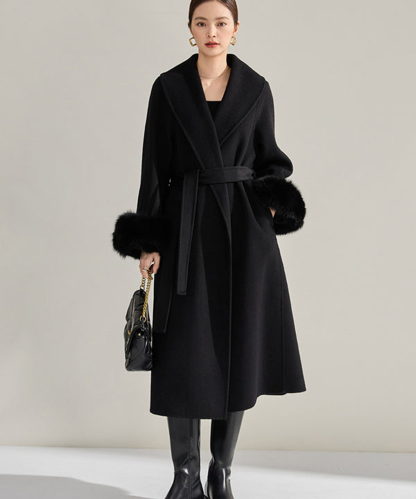 ラグジュアリーな袖ファーが魅力のロングコート