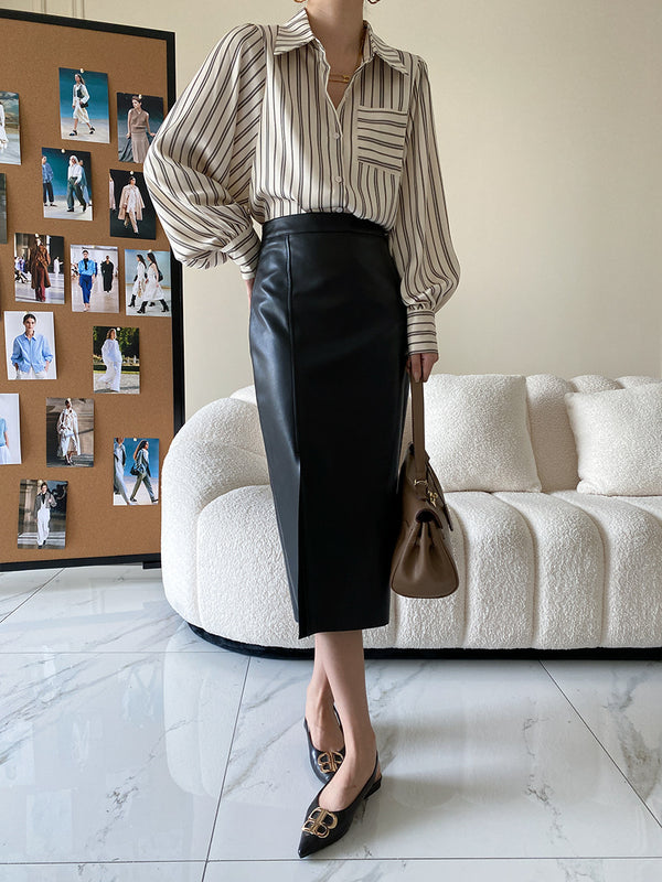 スリーブにゆとりを持たせたストライプシャツは、ルーズな着心地ながらきちんと感も備えた一枚。やさしいアプリコットカラーが印象を柔らかくし、オン・オフどちらにも対応できます。ゆったりシルエットで抜け感を演出しつつ、大人のデイリーに頼れるトップスです。