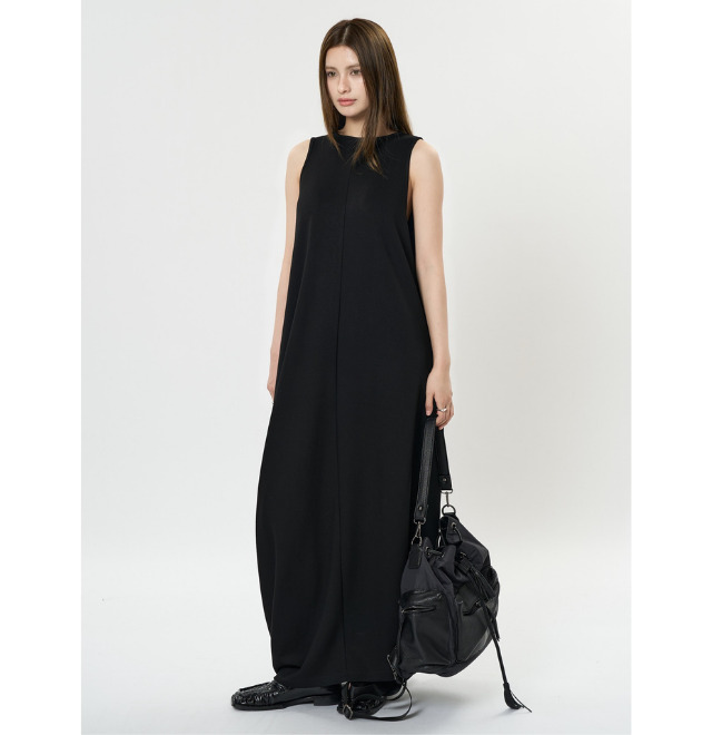 裾にかけてコクーンシルエットになった、シンプル&洗練デザインのノースリーブワンピース。