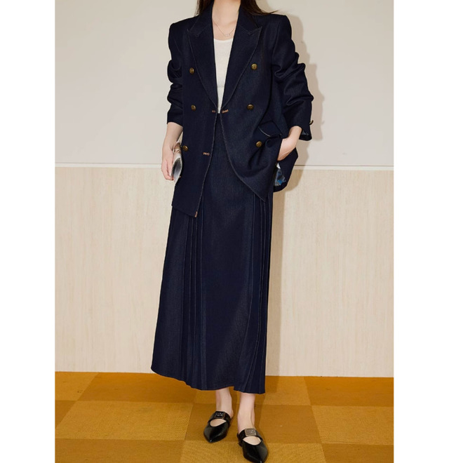 カジュアルなデニム素材を贅沢な分量のプリーツで仕立てたスカート。