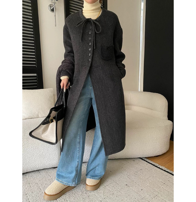 アイボリーのタートルと合わせれば上品に、黒のパンツと合わせればモードに。このコート一枚で、冬のワードローブが何倍にも広がります!