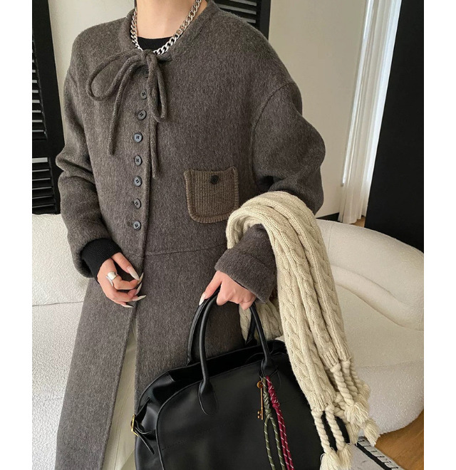 この温かみのあるモカグレー。お肌をくすませず、それでいて全身を都会的な印象に引き締めてくれます。イボリーのパンツと合わせれば、冬の装いが一気に明るく、軽やかに垢抜けます。