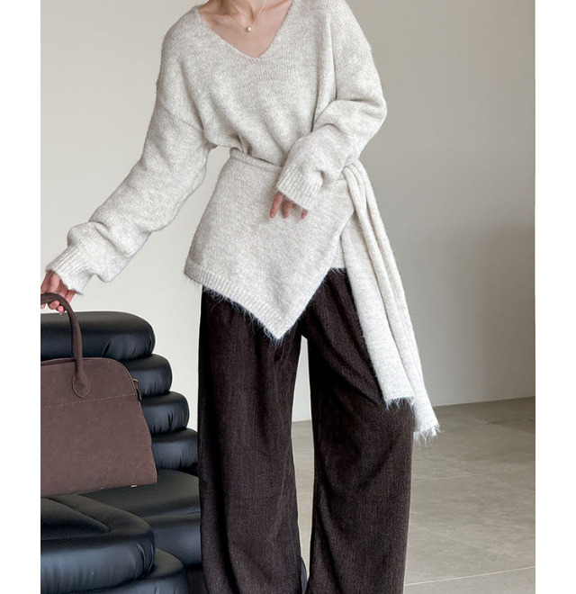 ドルマンスリーブが印象的ニットには、両サイドにスリットが施してあり、