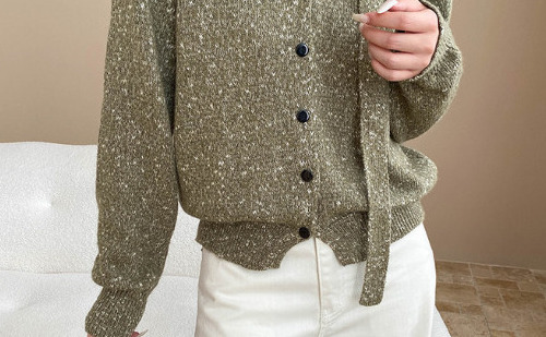 柔らかいミックスニット素材が心地よいVネックミックスニットカーディガン。