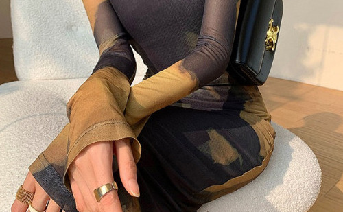 大胆なアートプリントが身体を美しく演出するシアーキャミレイヤーワンピース。