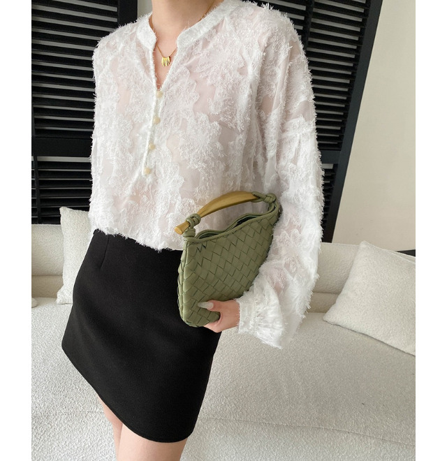 フラワージャカードのレーシーなトップス。