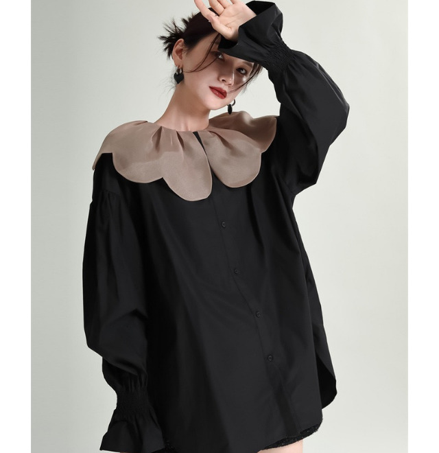 オーガンジーのペタル(お花)襟のコットンブラウス。
