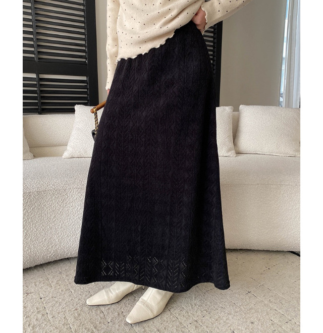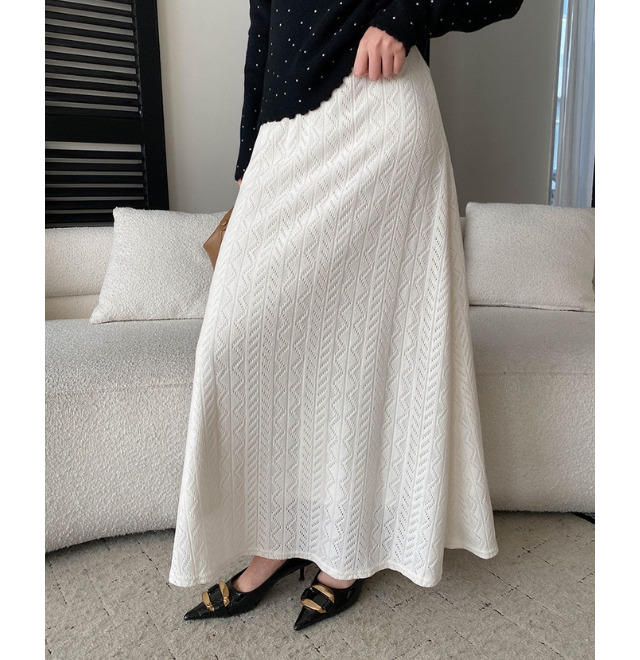 ジオメトリックのレース編みが繊細な、ニットのカットソースカート。