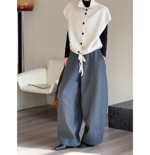 ハイネックとフレンチスリーブで首元、肩先をカバーしてくれるニットのベストです。