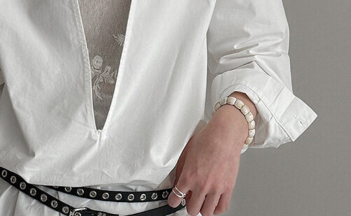 見慣れたシャツも、クシュっとしたフロントボタンで表情豊かな一枚に。