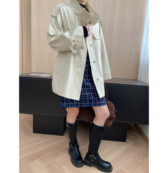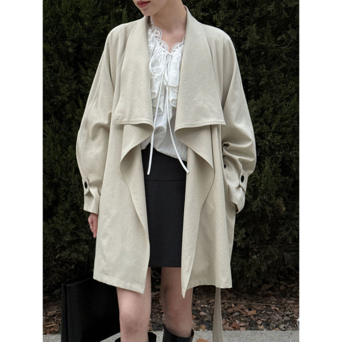 トレンチコートをエレガントにアレンジしたライトアウター。