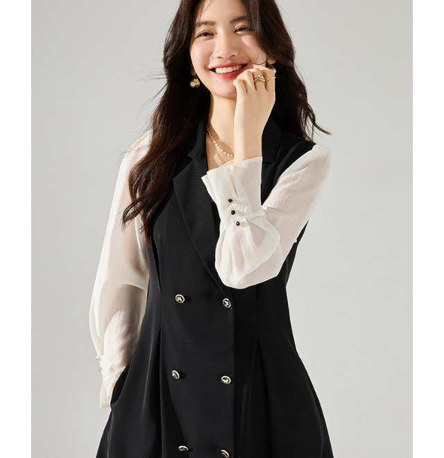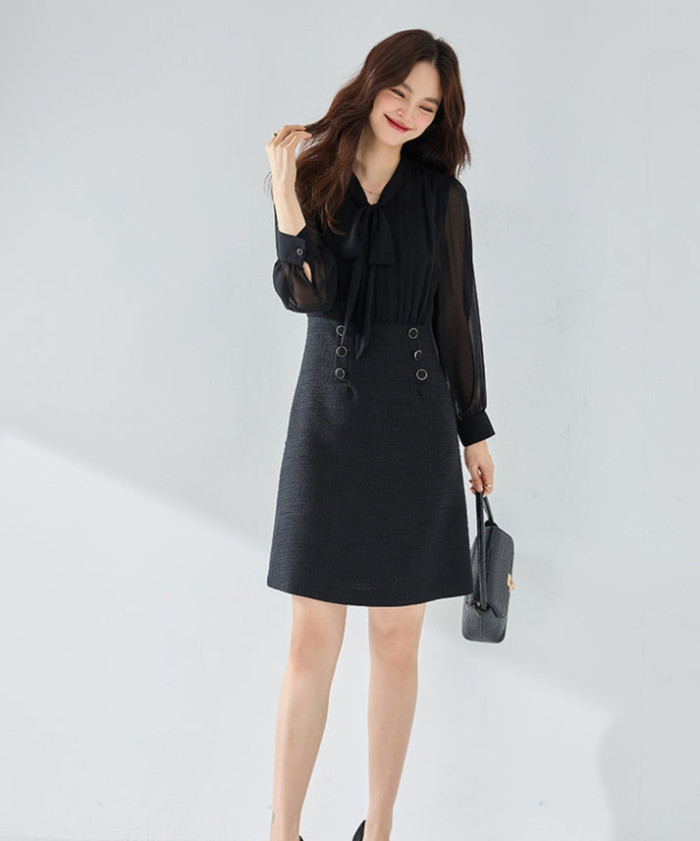 ボウタイシフォンブラウスフェイクツーピースワンピース