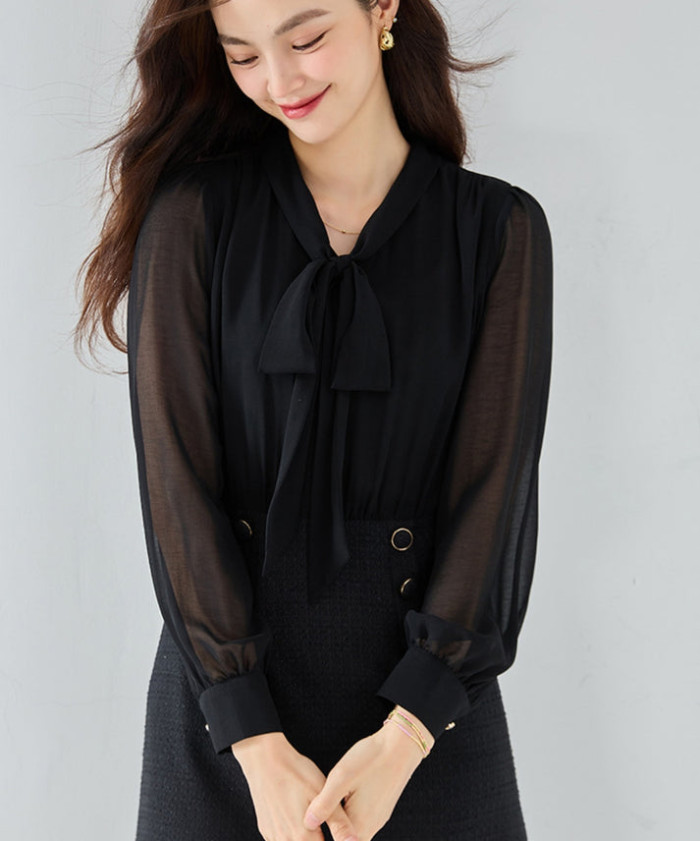 今季トレンドでもあるボウタイリボンに女性らしい雰囲気を託せば