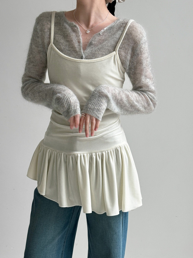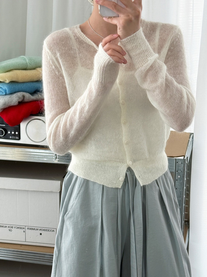 どんなコーデにも馴染む万能カラー。ふわりと軽やかなモヘアの質感がホワイトでいっそう際立ち、パッと明るい印象を与えてくれます。デニムやベージュのパンツと合わせるだけで、さりげなく洗練されたスタイルが完成。一枚持っておけば、季節を問わず長く活躍してくれる頼れる定番です。