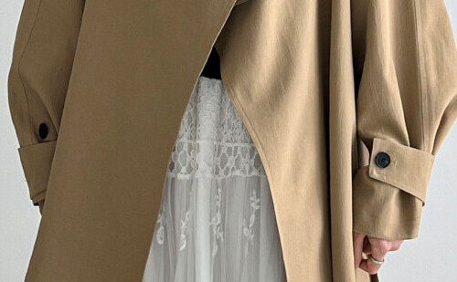 今季注目のオーバーサイズシルエットを取り入れながらも、ウエストのリボンベルトで女性らしいくびれを演出できる、絶妙なバランスが魅力のトレンチコート。