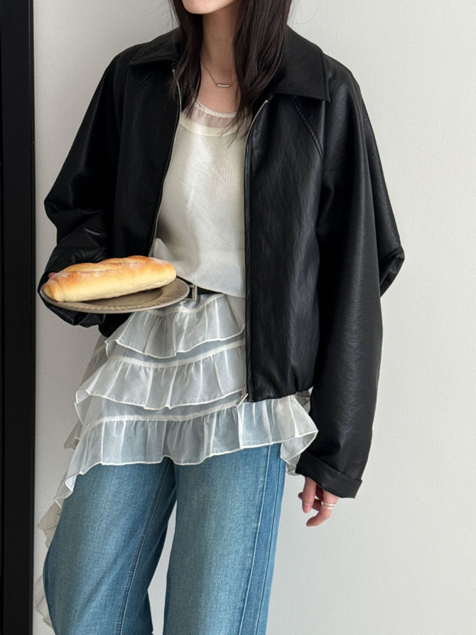 デニムやワイドパンツに合わせてリラックスしたカジュアルスタイルに。