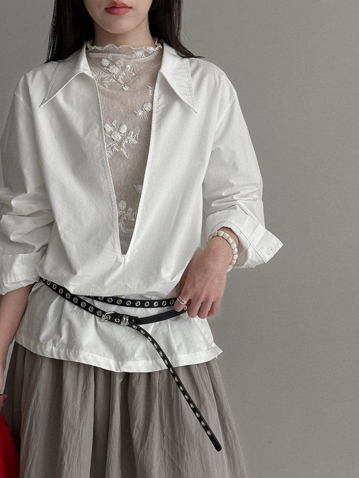 深いVネックが印象的なコットンのスキッパーシャツ。
