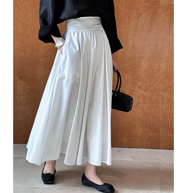 スカートの上品な存在感で、シンプルな白Tシャツを合わせるだけでもコーデが決まります。