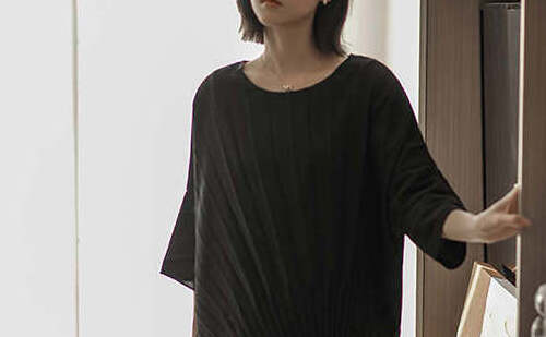 ゆったりとしたシルエットながら、プリーツが体のラインをさりげなくカバーしてくれるから、