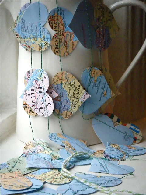 ベースになる土台に地図を貼ったウォールアートもお洒落です。