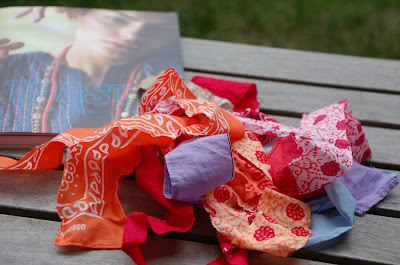バンダナを適当な細さでカットします。手で裂いた方がカジュアルな仕上がりになります。